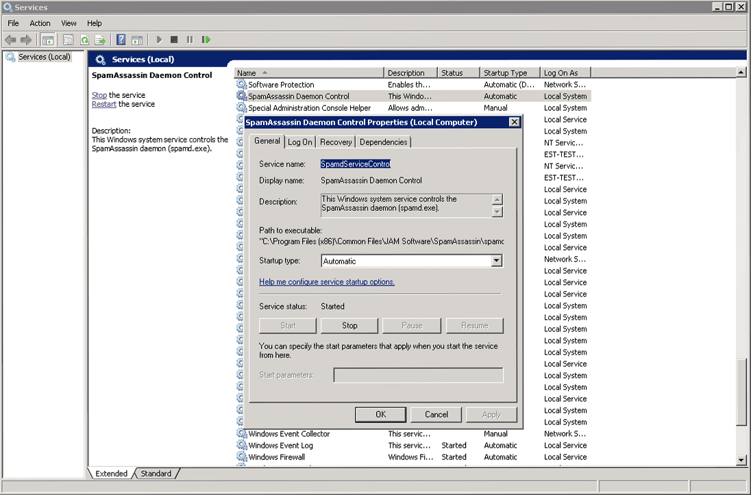 - You can control SpamAssassin via the Windows service options.