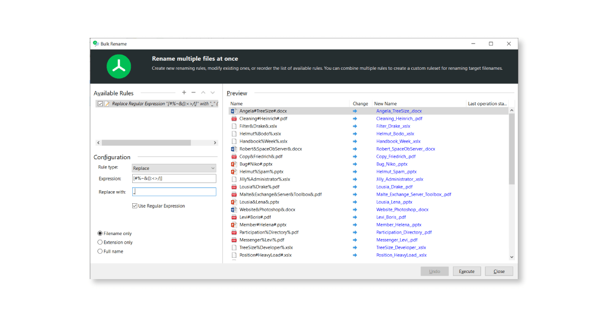 That's where TreeSize comes in: Bulk rename files according to your own criteria with just a few clicks. We'll show you how.