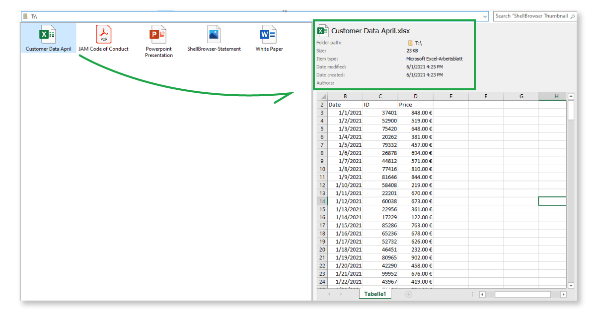 The busy software user expects your program to present a little preview of the file content when selecting an item: Imagine users scrolling through a directory full of Excel files, for example. Do you expect them to open each one individually to check if it’s the right table they are looking for? No, not really. You want your users to feel more comfortable because your software offers a quick preview of document contents in the tiny window on the right side. Does this sound good to you?