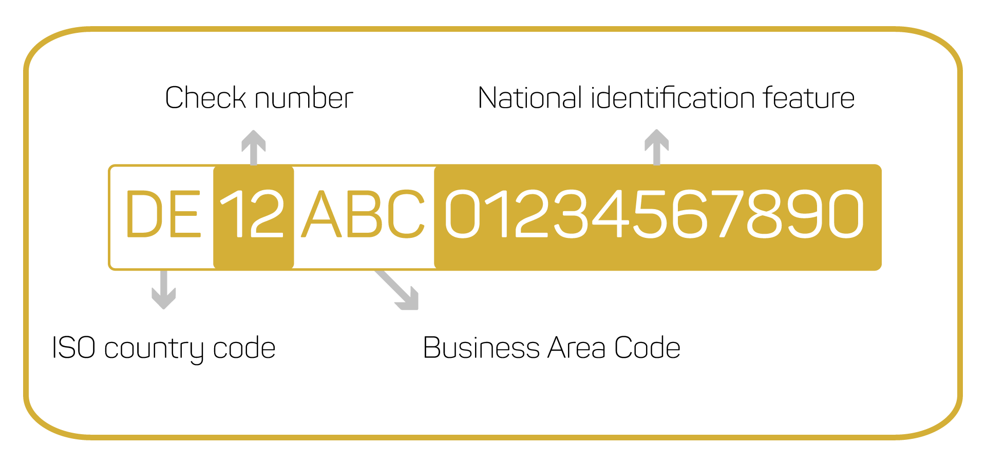 The creditor ID has a uniform structure. Explained easily: The length of the identification number varies depending on the country and contains the following information: