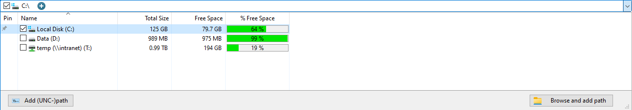 The TJamDriveList component is used in our disk space management tools TreeSize and UltraSearch. Here, it helps the user decide which drives to scan or search in a clear overall view of all mounted drives.