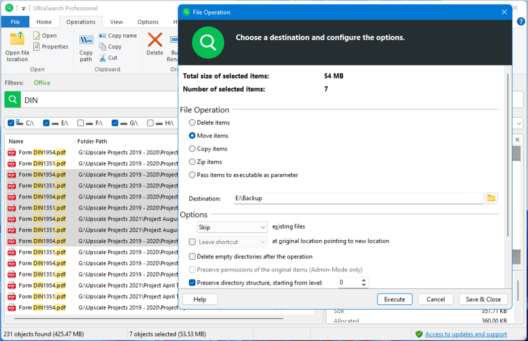 With UltraSearch, you can quickly find the right file even in large amounts of data by refining your search with filters.