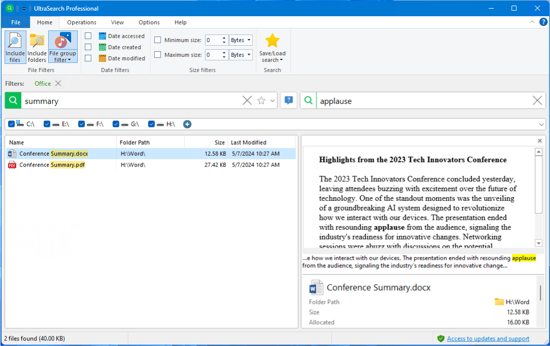 Can't remember the file name? No problem, because UltraSearch can also find files based on their content.