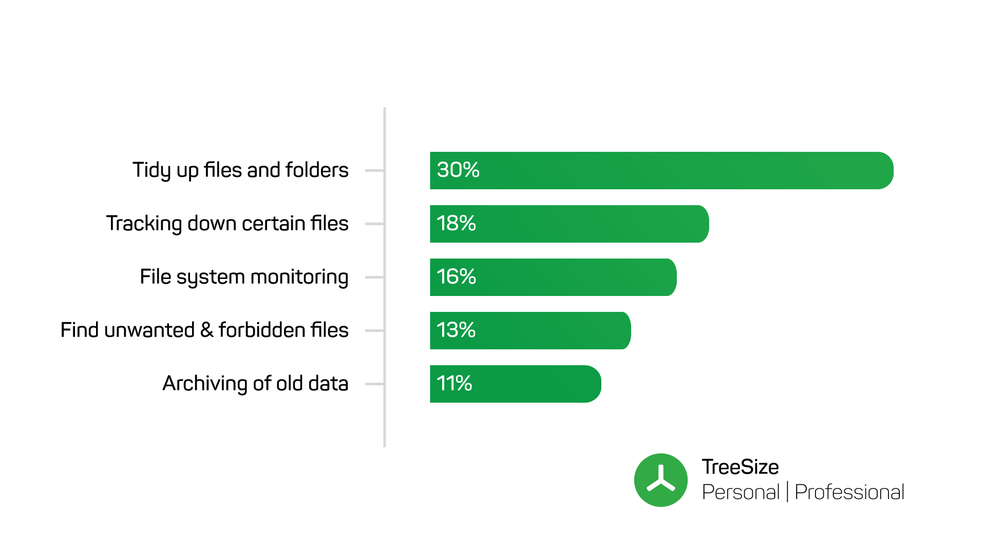 While TreeSize Free already covers a wide range of use cases, TreeSize Personal and Professional can solve almost any storage problem. The TreeSize community has voted and chosen its most popular features out of 11 possible features. Here, too, multiple selections were possible.