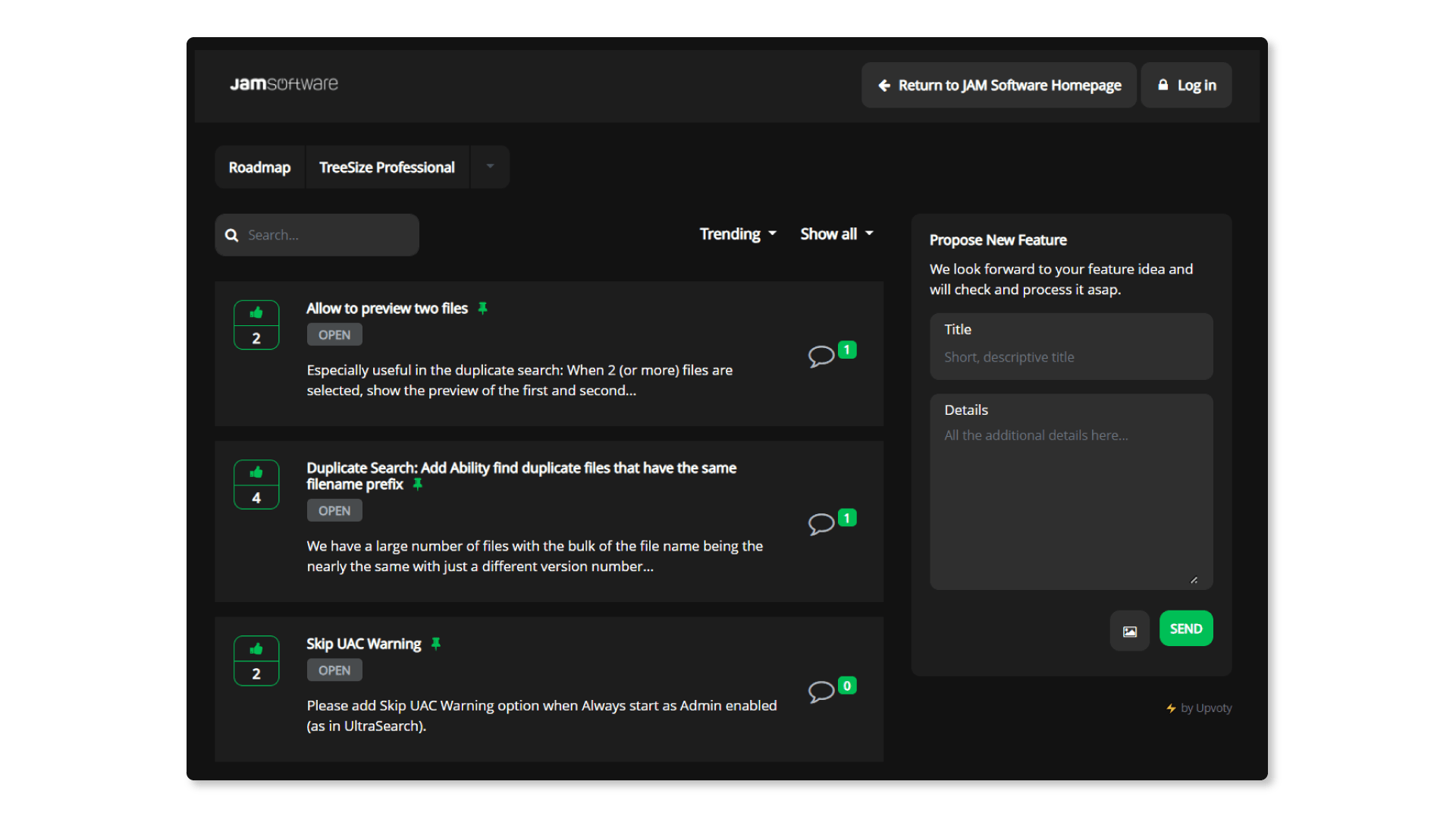 Have a look yourself and take part in the feature voting - by the way, you can also find UltraSearch Professional and SpaceObServer for voting here. We are looking forward to your ideas!