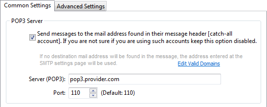 One email account, many email addresses - there are times when this path needs to be taken. With a catchall account you can easily collect emails from many different addresses and download them to your server. SmartPOP2Exchange reads the recipient address from the header information and inserts it when handing over your emails to the SMTP Server.