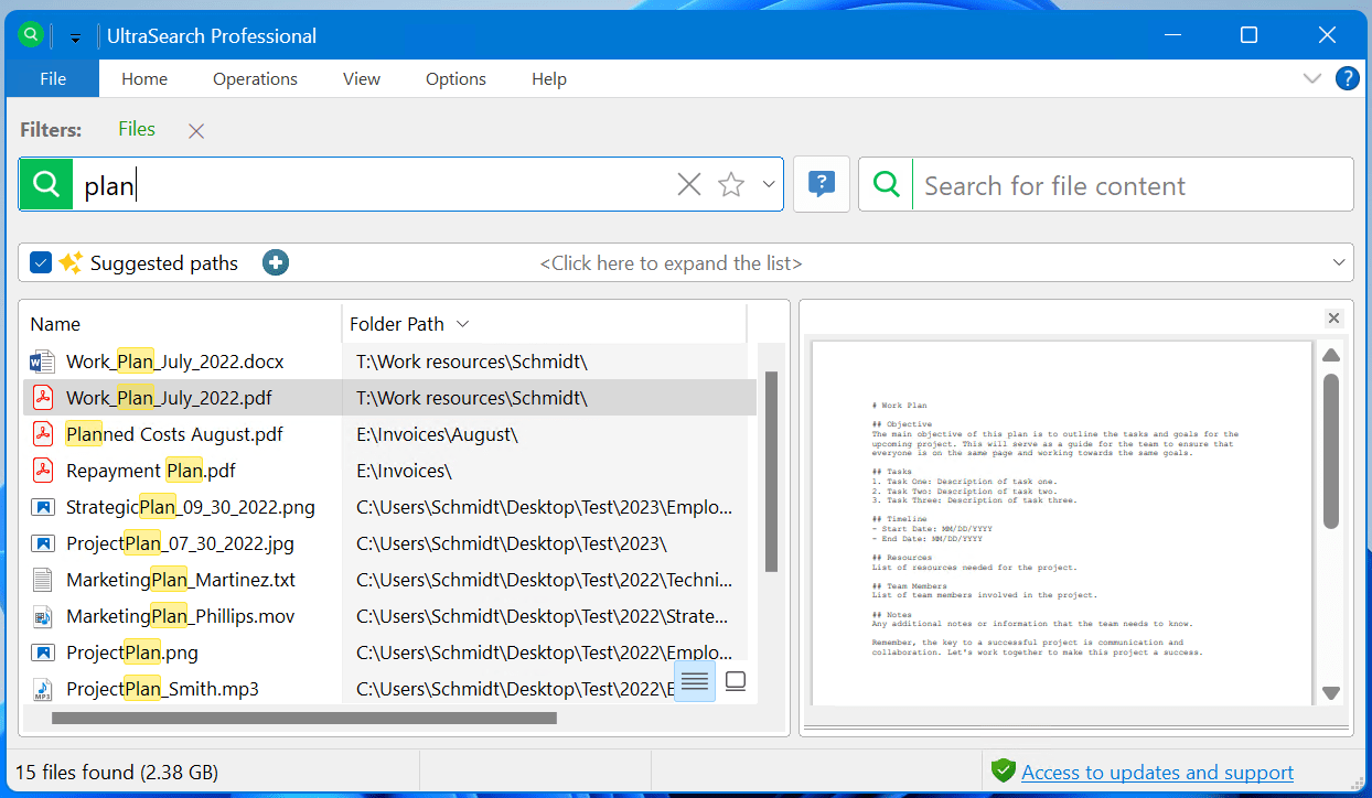 Do you have no idea where the file or document you are looking for is located? Then rely on the suggested paths and our smarter Ultrasearch gets you to those files swiftly.