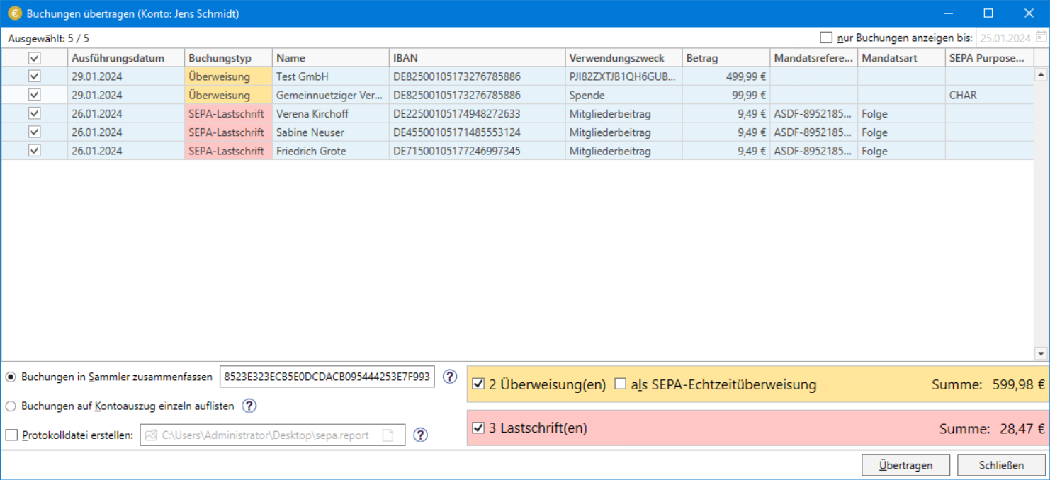 With the banking tool SEPA-Transfer you can easily make a collective transfer: