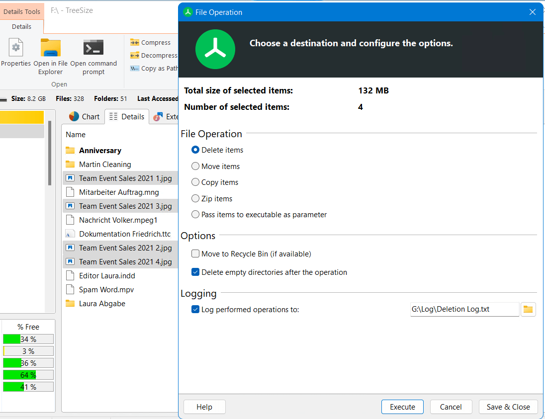 Did you know? TreeSize can also document all operations in a log file to make changes transparent for you. This allows you to check and undo any errors.