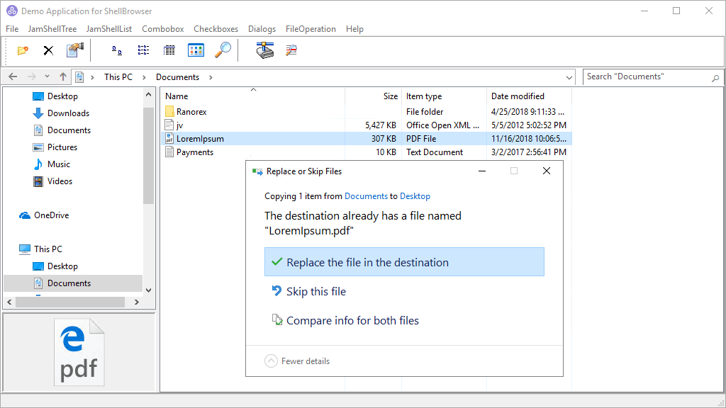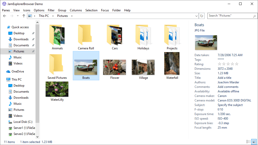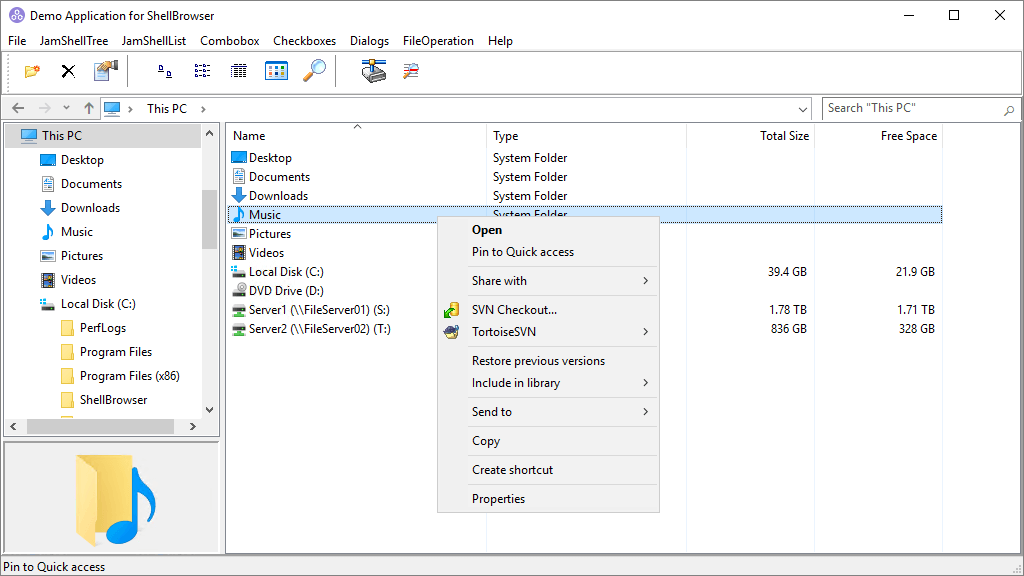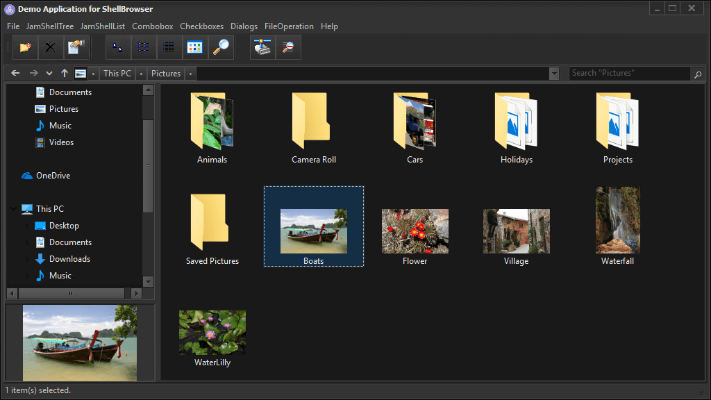 ShellBrowser Delphi Components can emulate functions known from the Windows Explorer. This includes context menus, left and right pane of Explorer windows, thumbnails, virtual folders and shell extensions. Use the ShellBrowser Delphi Components and get easy access to the Windows Shell functionality!