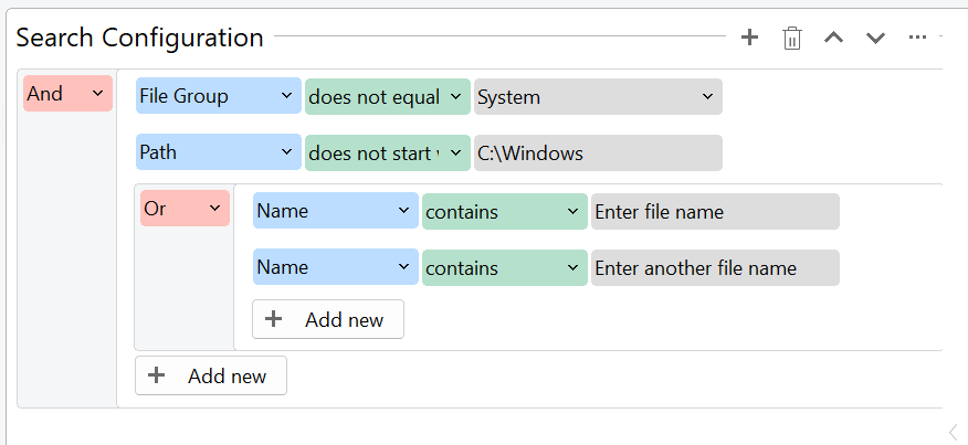 We have also revised the filter structure of our advanced file search. It is now more clearly defined to which filter structures and/or links refer.