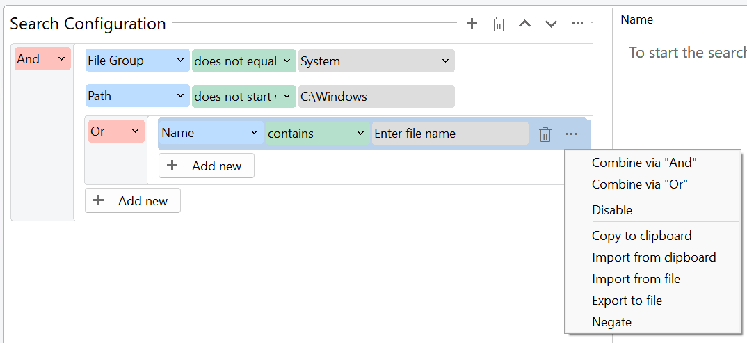 This makes it much easier to create specific searches with complex filter combinations!